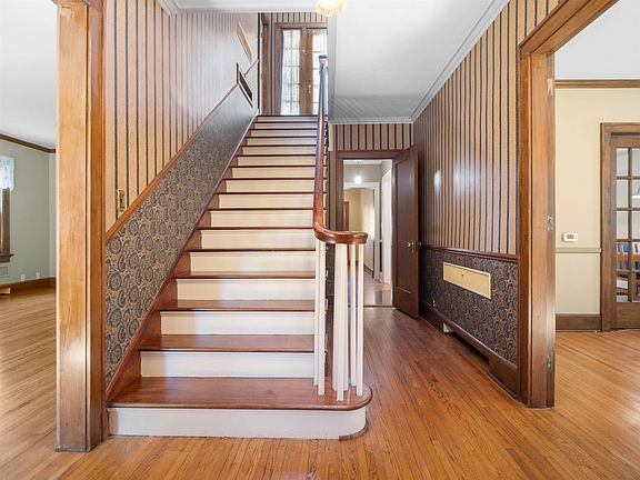 This Opportunity only presents itself once every few decades. A Crown Jewel in the Sought-After Kensington Park Neighborhood. Beautiful, all-Brick Home with Architectural Highlights throughout. A Slate roof, Unique Brick Design, Custom Tile Entry, Oak Hardwood floors & Walnut Wood Trim, quarter-round with brass fittings are just a few of the Features that make this home so Special. Greet your Guests in the Grand Foyer and Entertain in the The Formal Living Room & Dining Rooms, which offer Generous Sized Spaces, Hardwood Floors & Trim, Crown Moulding & an Inviting Fireplace & Handcrafted Mantel. Updated Eat-In Kitchen with Corian Countertops, Tile Backsplash Island/Breakfast Bar, Stainless Steel Appliances, including a High-End Fisher and Paykel Refrigerator, White Cabinetry, beautiful buffet with extra storage, complimented by Natural Oak Hardwoods. Venture into the Bonus Family Room that leads to the lovely Brick Patio, Custom-Built Pergola & Hot Tub Area. The Grand Staircase leads to an Upper Balcony Space, 3 Spacious Bedrooms that include a Primary Suite with an Alcove/Nursery space and walk-in closet. Hallway Built-Ins offer Storage and a Cedar Lined Closet. Pull-Down Stairs lead to a Huge Attic that could be made into a 4th Bedroom or more finished space. Take in the Views from the upper Balcony Area. Enjoy the historically significant bathrooms on main and upper level, which were Modernized without giving up their Character. Over 800 finished square feet in the Finished Daylight Basement One of a Kind Terazzo Tile Flooring, Recreation Area, Full Bathroom with Tile Shower, Exercise/Hobby Room and Tons of Storage. Vinyl Replacement Windows, Desirable Hot Water Heat, Central Air and Newer Mini Split Systems. The Brick 2 Car Garage Offers overhead Storage & Original Overhead Doors. There’s Plenty of Parking, a Storage Shed and Garden Space. Be the Next Lucky Owner of this Beautifully Maintained Home.