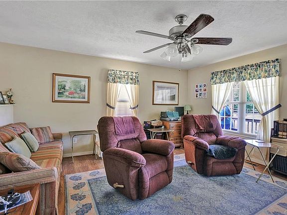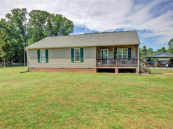 Great opportunity to have a newer (2005) ranch on 2.5 acres with 3 bedrooms and 2 baths PLUS a 16' x 16' enclosed porch and a large front country porch. Outside are multiple outbuildings including an oversized 2.5 car garage with attached covered parking, a separate covered parking pad, covered deck, chicken coop, fenced rear yard, shed, and more. Inside are vaulted ceilings, laminate flooring, an open kitchen with island. Enclosed porch has air conditioning and makes a great extra bedroom or sitting room. The additional 260 square feet of enclosed porch is NOT included in square footage.