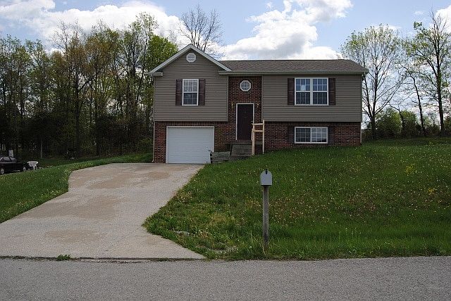 Property is a 3 bedroom, 2 bath split entry floor plan with 2 bedroom/1 bath on upper level and master and one bath on lower level.