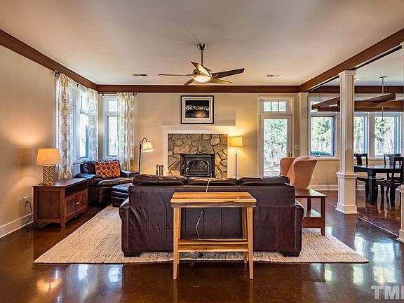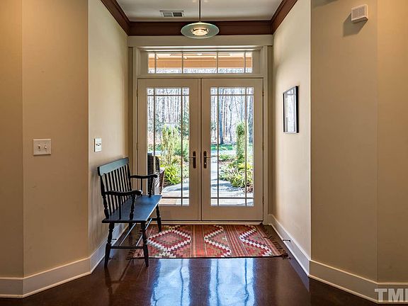 Rare to find such quality at this price and in the city school system with county taxes. Off a private road tucked in the woods is a true custom home. Details galore. Stack stone entry and chimney, polished concrete floors, window transoms, solid core doors, designer lighting and ceiling fans. Natural light floods every space. Well appointed kitchen with many work areas and huge pantry. Spa like master bath. Screen porch, patios and garden area. Just 4 miles from Carrboro and 5 minutes from I-40.