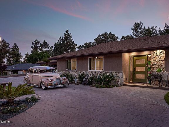 Steps away from the Altadena Country Club, w/ views of the lush golf course, sits this remodeled single level mid-century home. Built in 1957 & remodeled extensively it retains the spirit and style of the era w/amenities ideal for the modern family. Approach the home via a horseshoe driveway where you are invited in by the stone veneer and blooming roses. The living room welcomes you with a cozy atmosphere, as does the formal dining area. Three large windows frame the living & dining area, bringing in warmth and flooding the room with natural light. Just beyond the dining area, the reconfigured state of the art kitchen exhibits stainless steel appliances, tile backsplash, & oversized center island w/farmhouse sink. Adjacent to the kitchen is the family room with a stone fireplace and sliding doors to the outdoor patio area. In addition to the family room is a separate media room that opens to the patio. An en-suite master bedroom has ample walk-in closet space and a stylish bathroomwith dual sink vanity, soaking tub, and rainfall shower. 3 additional BR, office a remodeled bathroom complete the living wing. The spacious backyard w/ fresh California-friendly landscaping and a large patio with outdoor cooking space is perfect for indoor/ outdoor living!