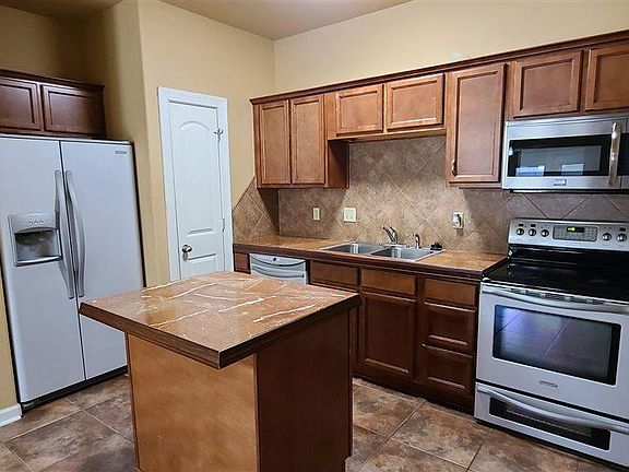 This home features a fenced back yard, 2 car garage, Stainless Appliances, Granite Countertops, Tall ceilings, and Alarm System. The kitchen is furnished with a stove, refrigerator, dishwasher, disposal, built in microwave. Also include is central heat and air, Dining room, tray ceilings, hardwood floors in living room, ceramic tile, Carpet in bedrooms, Double walk in closets in master, jetted tub, walk in shower, washer and dryer connections in separate utility room. (Washer and Dryer currently there).