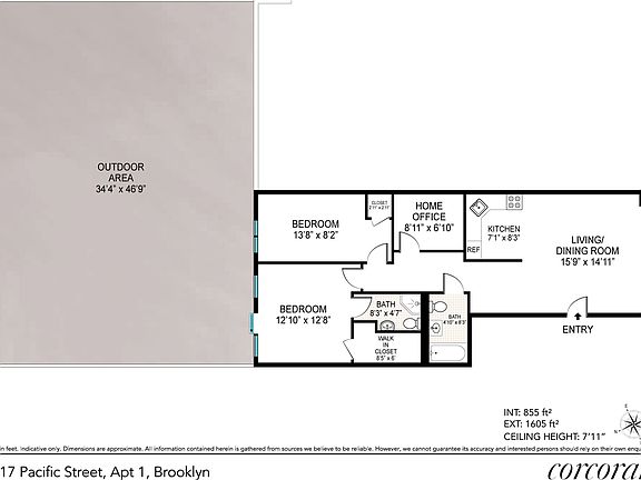 This 855 square foot multi family home has 2 bedrooms and 2.0 bathrooms. This home is located at 1617 Pacific St #1, Brooklyn, NY 11213.