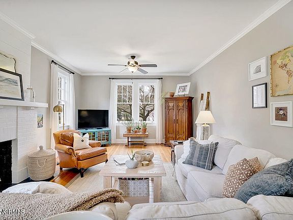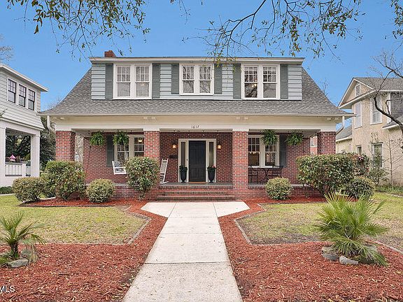 Searching for historic charm and character with modern conveniences of new construction... your search is over. Superbly renovated only 4 years ago, this 1920's brick craftsman home located in Carolina Heights, one of Wilmington's oldest streetcar suburbs in the historic overlay, features included a new roof, new HVAC units, updated plumbing, new electrical, original golden hardwoods, streamlined interior, classy wainscoting, lovely character in the old school sturdy windows, doors and stairs' hand rail, built-in shelves and full BA on the first floor. The open kitchen has a unique butler's pantry, granite counters and stainless appliances, eat-at-bar, creative lighting. Upstairs, 2 BDR, full BA with smart looking tiled shower, classic tile floor, wainscoting and medicine cabinet, the master BDR with oversized BA, striking brick wall feature, large tiled walk-in shower and plenty of closets and storage. This home has a large front porch, a deck out back, a contained gravel area with fire pit for gathering with friends, back alley access, garage and large separate workshop. Come live in the charm and character of yesterday with the modern touch of today.