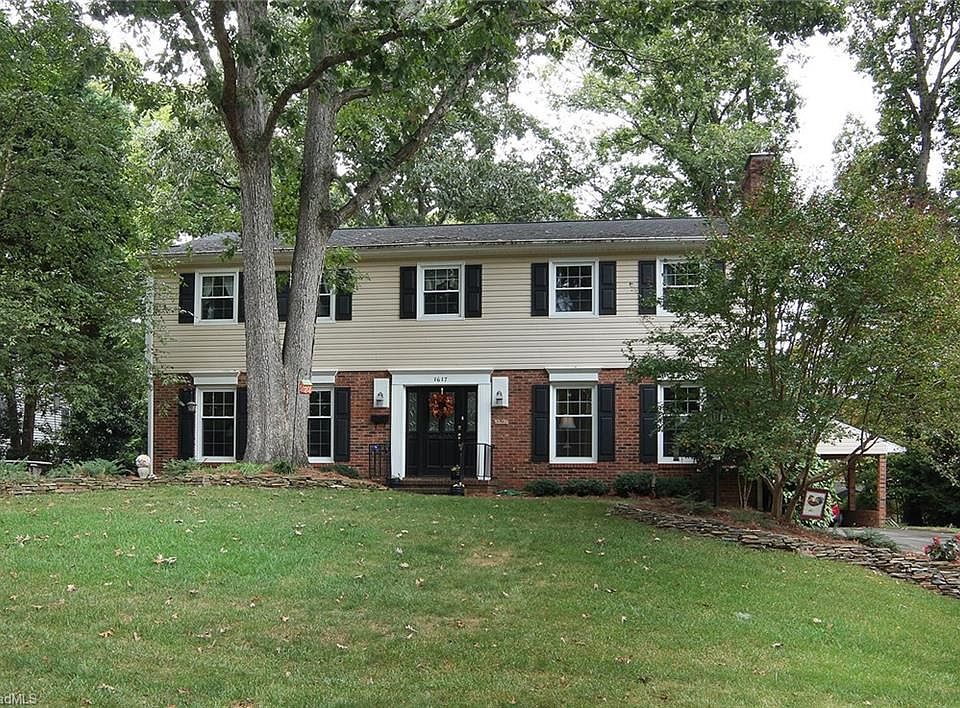 Spacious move-in ready 4 BR home in the desirable Forest Valley neighborhood, just minutes from Friendly Center. Lovely renovated kitchen with new cabinets, quartz counters, all kitchen appliances remain. Large family room with fireplace, separate living and dining rooms. Replacement windows. Relax in the 20 x 17 sunroom (not included in square footage) overlooking a private fenced backyard. Two car carport with wired storage room attached.
