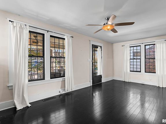 This picture perfect bungalow sits just blocks from Washington Park! It offers a large front porch, which enters to the living room with hardwood floors and a fireplace with built in bookcases. The kitchen has white cabinets, stainless appliances, and island with seating, and pantry cabinets. It features a HUGE spa-like bathroom with a tiled shower and vanity area. Off the hallway there s a bedroom that overlooks the backyard. An additional bedroom/office/dining room (no closet) is located off the kitchen with sliding barn doors. A half bath with laundry hookups is also located on the main floor. There is a rear door to the backyard with a new composite deck and hot tub. The full basement is unfinished. There is parking in the driveway and alley access.