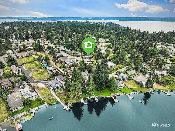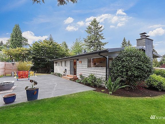 Location! Mid Century Gem in sought after Lake Burien. This home has maintained it's beautiful esthetic. Beaming with natural light and views of the Lake from all front facing rooms! On the Upper level you will find a living room w/ floor to ceiling brick fireplace, kitchen, dining space, 3 beds + 2 baths. Sliding doors off kitchen lead to expansive patio/backyard. Enjoy your private oasis while knowing you are close to everything Olde Downtown Burien has to offer. Downstairs you'll find a 1/2 bath, laundry room and a huge Rec room! 2 car garage access from downstairs. Updates include new black metal roof, restored oak hardwoods, fresh exterior paint, new carpet throughout lower level and Beautiful landscaping! One-of-a-kind Mid Century !!