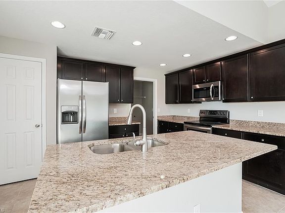 Brand-new, never-been-lived-in 2019 Construction Spaciousness, comfort and convenience. This beautiful NEW home is outfitted with a cathedral ceiling, tile flooring in the main and wet areas, stainless-steel kitchen appliances, granite counter tops, upgraded cabinetry, recessed lighting, ample pantry and bedroom closet space, a walk-in master closet, a dual-basin granite master vanity, no-step master walk-in shower, shower-tub combo guest bath, and four bedrooms. Enjoy evenings out of doors under an open roofed lanai. Please read the Rental Criteria for details. Non-refundable pet fees include: $250/per pet due prior to lease start date / $25 per pet rent each month.