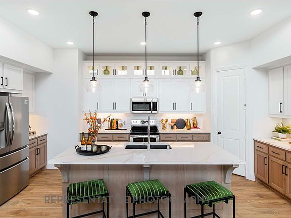 This stunning model home includes all of the bells and whistles, including a turf backyard and community maintained front yard for low maintenance, luxury living! Featuring an upgraded painted white brick exterior, 4 bedrooms, 3 full baths, soaring ceilings with high windows allowing tons of natural light and exquisite design finishes throughout! The loft and entertainment room along with the open concept kitchen and living area offer plenty of space for entertaining while the primary bedroom with bay window offer a quiet retreat with sitting area and en suite bath!