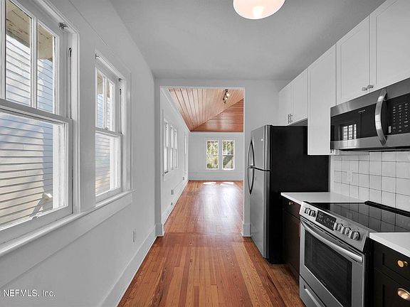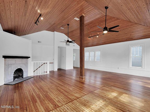 Sitting in the heart of San Marco , this stunning duplex will simply wow you. The upstairs unit is a huge 1 bedroom unit that boasts of over 1200 sq. ft and has been tastefully remodeled. Exquisite,wood vaulted ceilings, fireplace, and gleaming hardwood floors. Kitchen has quartz countertops, brand new stainless steel appliances, farmhouse sink, and new shaker cabinets. Bathroom has also been redone, beautiful walk-in shower with subway tile and a quartz vanity. The upstairs unit also has a new washer and dryer, new plumbing and a new water heater. The downstairs unit is a 3/1, 1300sq and is currently being used as a veterinarian's office. That unit also has a fireplace, and hardwood floors. The roof is 2 years new and there is so much parking, it's insane! Huge backyard that can