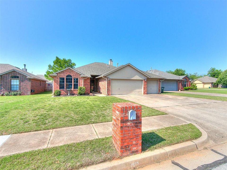 Welcome to PEBBLE CREEK a popular Edmond School District community. Excellent location close to all amenities, Mitch Park, Schools, shopping and so much more! This home features three good sized bedrooms, master is extra big, two full baths, and a three car garage. Throughout you will find plantation wood shutters, plank style tile flooring, lots of natural light. The kitchen is extra spacious, with eat in dining space, center island and lots of cabinetry. This home has an EXCELLENT location if you wish to use the neighborhood community swimming pool and community park playground as it is right across the street! Tucked in nice and quiet in the interior of the community at the end of a semi cul de sac. Come enjoy this homes covered patio, spacious back yard, with storage shed for your tools or toys! This home has been cared for and ready for you to make yours!