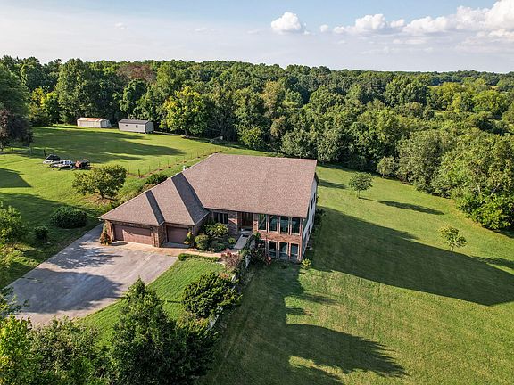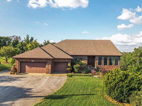 If you're looking for country living with all the benefits of being close to town - check out this one of a kind custom built home with a walk-out basement in Nixa! Over 3 acres of mature trees grace the landscape along with cherry, apple, peach and fig trees! With over 5,000 square feet this home was made to entertain! As you enter, a large sunroom/atrium is off to the right with stunning arched windows lining the room and flooding the home with natural light. A large chef's kitchen with a dining area, breakfast nook, island, and bar, leave plenty of space for gathering the family for holidays or parties. The great room has soaring ceilings, brick fireplace, and large windows looking out over rolling green hills. The wood deck off the dining room is the perfect place to watch deer graze while you enjoy your morning coffee. The master bedroom boasts dual walk-in closets, jetted bath tub, and walk-in shower. Another 1/2 bath and laundry room off of the garage complete the main level. Downstairs is where the fun begins! An enormous Rec room leaves space for all kinds of fun! A wet bar with plenty of cabinets makes this area ideal for movie or game nights! Three more bedrooms (2 non conforming - closets, no window) can also be used as an office, or work out area. There are multiple storage areas, bathroom and a large sunroom on the lower level as well. The owner has installed a new hot water heater, air conditioner, and furnace this year. The roof is around 5 years old. Air Service Heating & Cooling/All Service Professional Plumbing membership has been paid for through the end of the year and can be transferred to new owners. Come check out this amazing home with serene views from just about every room!