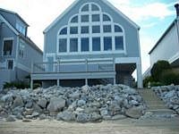 Village at Water's Edge. Coastal living, custom built (Roger Miller) townhome with unforgettable views and sunsets (YOU OWN THE LOT). Every square inch of this townhome has been designed for carefree, lake living. Partial crawl space has sump pump and storage which is heated. Side door from beach takes you to full bath and laundry area. Garage has built in cabinets for more storage. The vaulted ceilings are tongue and groove wood for easy maintenance. Flooring is either ceramic tile or berber, central vacuum, shower/bath combos are all one piece including ceiling, again for low/no maintenance. Enjoy lake living that is almost maintenance free! Association pool and shelter house, large sandy beach! Furniture package is available all high end, quality and nautical through out. Trek decking. Call today, this is a must see and one-of-a-kind condo. Great potential for high- end rental property or great family retreat!