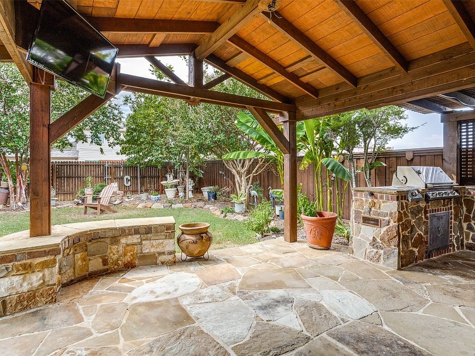 Great Location nestled in the heart of Anna TX. This 3-bedroom 2-bath this home offers a great combination of comfort and functionality. With upgrades being made in the home you will notice the great structure of the home, renovated bathrooms, stone chimney, wood floors and wood built in curtains give the home a warm welcoming, kitchen and living room connect perfectly for family gatherings. Master bedroom has a spacious and upgrade restroom. As you walk to the back yard you will find a beautiful patio with built in grilled, cover patio and fans ceiling, where family can enjoy cook outs, perfect spot for family celebrations, the front and back gardens of the homes are well maintained since irrigation system was installed in the house.