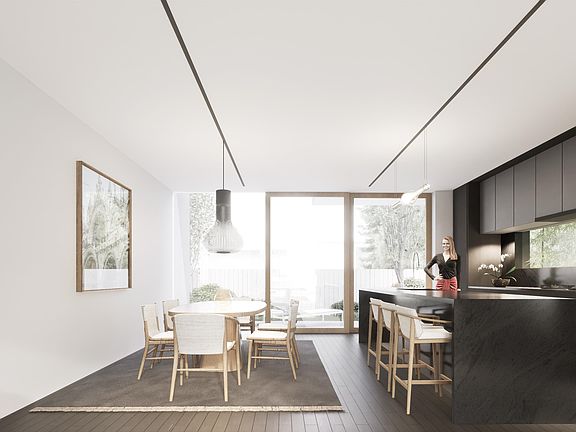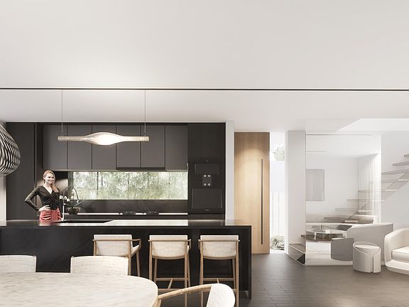 This beautiful concrete and cold-form steel, high performance home offers an open plan on the Living Level with direct connection to a large west facing deck. This provides the experience for seamless indoor and under-covered outdoor dining with unrestricted access to the yard. The Habitat by Aeon Kitchen, equipped with integrated Gagganau appliances, features an above counter strip window overlooking the bamboo garden stair, providing ample natural light. The Lower Level is designed with flexibility in mind, featuring a full rec room, guest bedroom, full bathroom, large laundry room, and dedicated storage spaces. The Upper Level has 3 bedrooms and 2 full bathrooms, including a master bedroom with a large ensuite, an oversized soaker tub, and a large multi-use outdoor contemplative space.