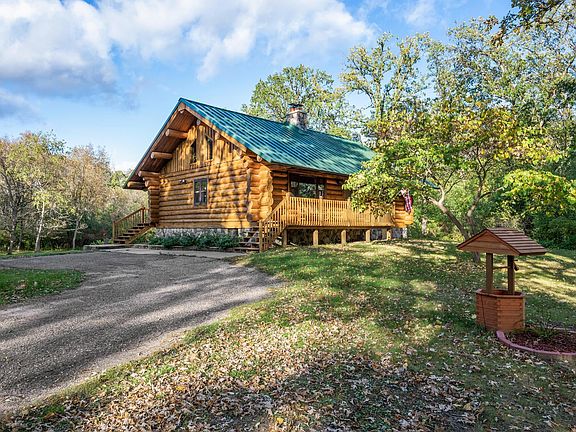 PRICED TO SELL. Nestled on 2.57 wooded acres, this authentic log home blends rustic charm with modern comfort. Inside, the inviting warmth of wood creates an ambiance unique to log homes, ensuring year-round coziness. A new 2023 AC guarantees your comfort. The furnace has a new motor and has been on a bi-yearly maintenance plan. The kitchen boasts an updated fridge and range. New washer/dryer, making daily chores a breeze. Ascend the stairs and admire the exquisite diamond willow railing, adding rustic elegance. A 30x40 pole barn with a concrete floor offers versatile space, while the walkout basement provides easy outdoor access. Gather around the whole stones wood-burning fireplace in the living room (new chimney and bird guard) for cherished moments. This log home, whether your year-round residence or a peaceful getaway, is your retreat from everyday life. Picture mornings on the porch, the sounds of nature, & cozy evenings by the fireplace. Don't miss seeing this remarkable home.