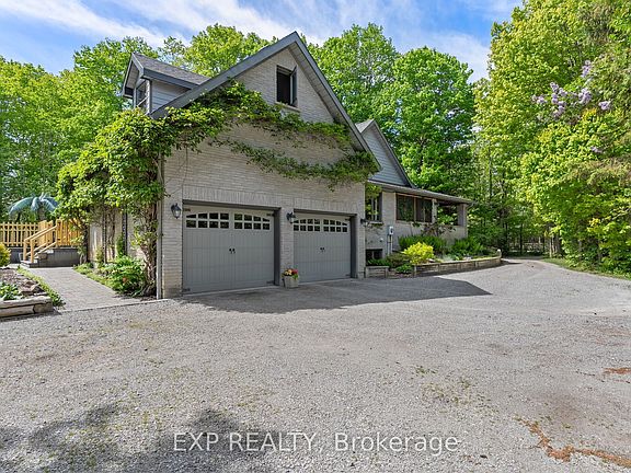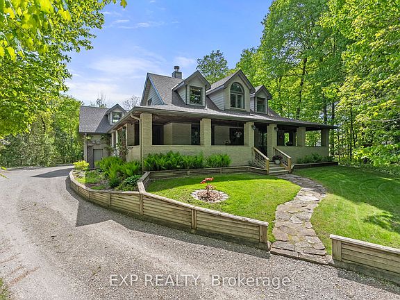 Step into a world where craftsmanship and nature come together in perfect harmony, where every detail tells a story. Tucked away on nearly 2 acres of enchanted forest, this 4-bedroom, 2-bathroom custom home is more than a place to live its a place to belong. Lovingly handcrafted, the very maple trees that once stood here now shape the wainscoting, trim, and whimsical fairytale doors, each plank milled right on the land. A grand three-sided fireplace casts a warm, flickering glow over the open living space, while the artisan-crafted kitchen invites slow mornings and lively gatherings. The master suite is a true retreat, offering a freestanding soaker tub and a cedar walk-in closet, infused with the grounding scent of the forest. Step outside, and the magic continues. A saltwater pool shimmers in the backyard, inviting you to take a dip beneath the open sky. Beyond the waters edge, a winding path leads to a quiet stream where you can catch crayfish, dip your toes, or simply let the gentle ripple soothe your soul. In the evening, gather around the fire pit in the back forest, sharing stories as fireflies dance in the dusk .Despite its fairytale setting, this home is just 3km from Highway 400, offering seamless access to city conveniences while preserving the peace of country living. With ample parking for guests, this home is ready to host every chapter of your story. Come, step into something extraordinary.