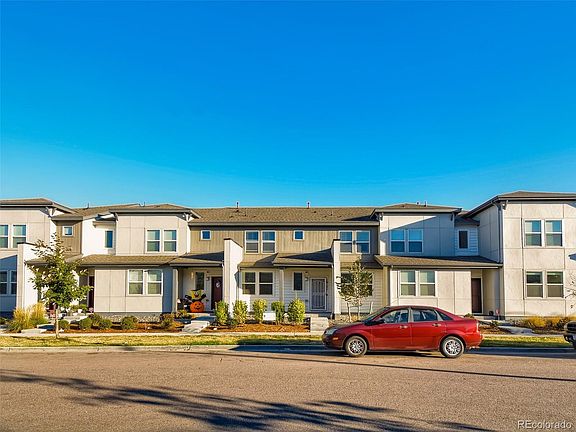 Lets talk. Beautifully Kept, nearly new 3 Bedroom, 3 Bath with an open concept to enjoy. A light and bright living room. A lovely kitchen with expansive granite countertops and full tile back splash, a large island that contains the kitchen sink, beautiful bright white cabinets, eat-in kitchen area, upgraded GAS stove, Stainless whirlpool appliances, beautiful engineered floors that stand up to scratching and water and recessed lighting. Half bathroom on the main floor as well as the entry to your attached 2-car garage. Take Pleasure in all the Natural Light that comes in through the Primary Bedroom and retreat to en-suite bathroom and large walk-in closet. A hallway, perfect for displaying photos. Down the hall are two more spacious bedrooms and a full bathroom. Upper floor laundry is complete with washer & dryer. Plenty of closet space throughout the home. The Community HUB features a clubhouse, pool, business center, parks, and a dog/pet wash! Easy freeway access. Conveniently located near shopping centers and dining, close to DIA, downtown & public transit. Don't miss your opportunity to see this beauty! Schedule your showing today!