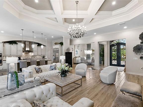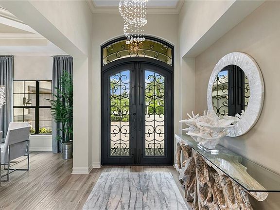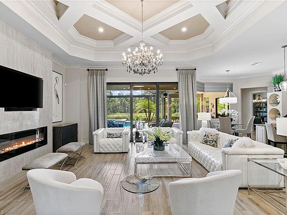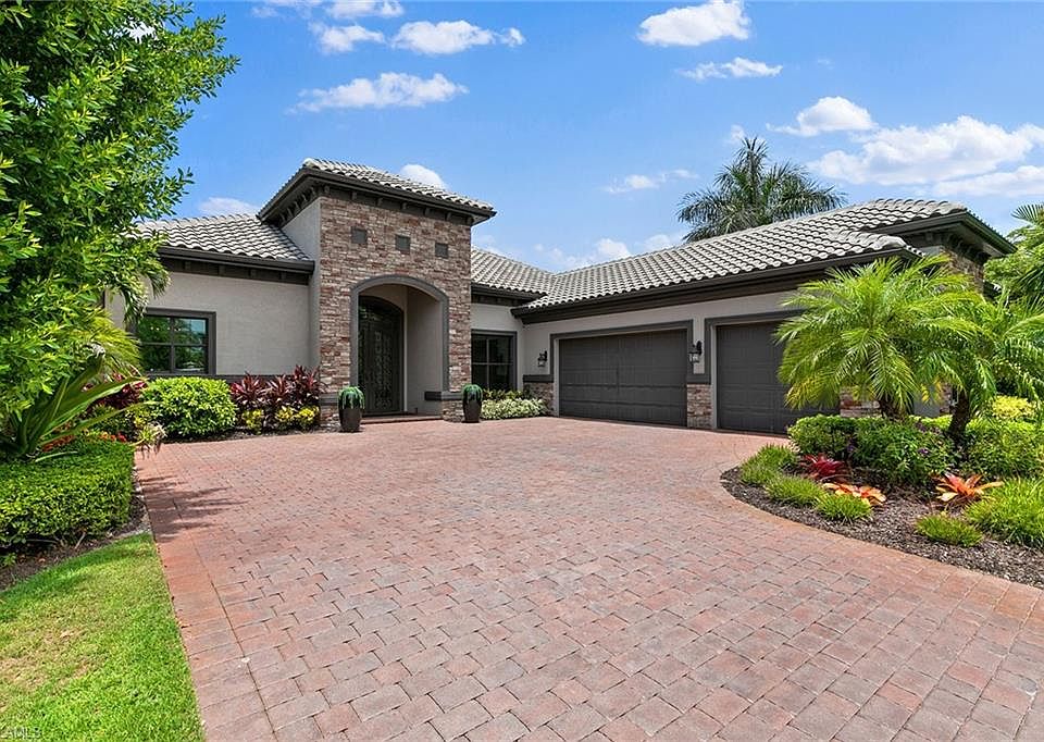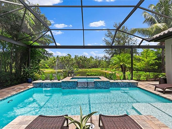 Located in the private and intimate gated neighborhood of Marsilea, this luxury single-family home showcases the finest of designer upgrades and craftsmanship throughout. Nestled on a professionally landscaped lot, with lake and preserve views, this three-bedroom plus den, three-bath and three-car garage pool home offers 3,822 total square feet. The open concept floor plan, with split bedrooms, boasts an inviting foyer with a formal dining area with coffered ceiling, and a spacious living area with a custom linear fireplace and coffered ceiling. The gourmet kitchen is amazing with an oversize center island, stainless steel appliances, custom cabinetry, gas cooktop, a breakfast nook and a spacious, light-and-bright study. A roomy primary suite with coffered ceiling overlooks the lake, and the oversize bath with large sitting area and separate vanities is extraordinary. Plus, there are two additional guest bedrooms, two baths and a laundry room. A large paver lanai includes a saltwater pool and spa, a gas fire pit and summer kitchen are ideal for relaxing and entertaining family and friends. Windows and front door are impact glass and UV tinted.