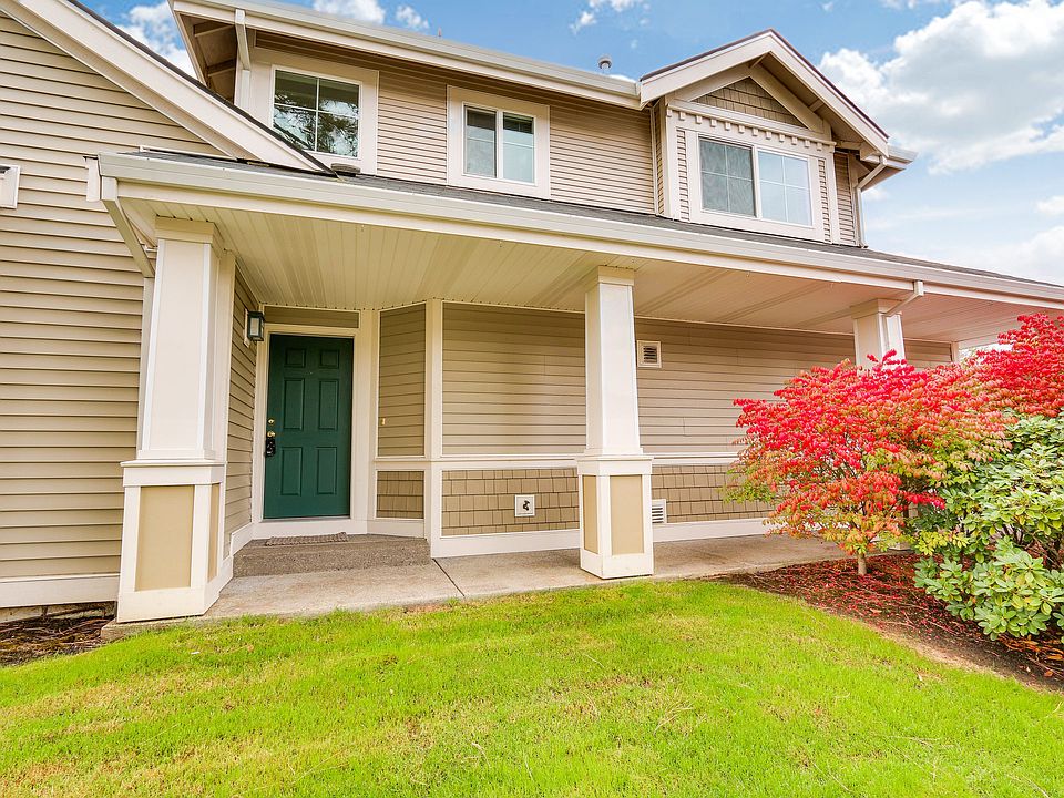 Creekside Condo's Finest! NEW Carpet. Gleaming engineered hardwoods on main! Grt Rm floor plan w/High Ceilings, Gas Fireplace, Ceil Fan, Door to Entertaining Patio w/Common Area Views. Formal Dining Rm AND Eating Nook off Kitchen. Kitchen has white Cabs, Slab Granite, Gas Stove, Blt-in Micro, Under mount Sink. Powder Bath/Utility Room on Main. Upper Level Master, 2 Addtnl BD + Bath up. Walk to THPRD Nature Park & Nike!