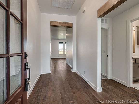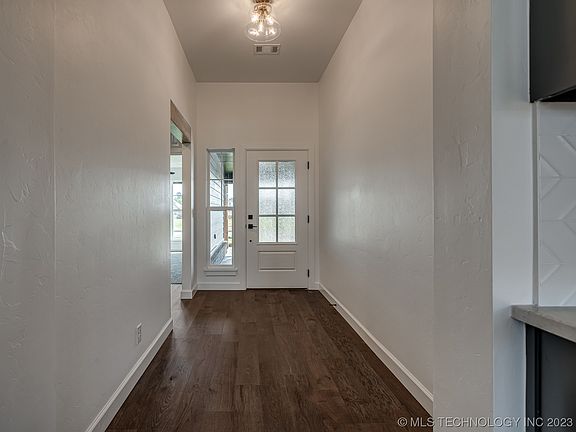 *Price reduced by more than $29,000!* This stunning farmhouse-style home features a private study/flex space, a spacious three-car garage, and an inviting open living area. The kitchen is a true masterpiece, showcasing luxurious quartz countertops, a charming farmhouse sink, and built-in appliances, including a gas range. Floor-to-ceiling cabinets provide ample storage while elegant pendant lights add a touch of sophistication over the island. Hardwood flooring graces the main living spaces, and a captivating shiplap fireplace with a stained mantle sets the perfect focal point, complete with TV hookups for easy mounting. The primary bathroom is an oasis of relaxation, featuring a generously sized tiled shower and an exquisite freestanding tub. New homes in this sought-after suburb of Tulsa offer homeowners the perfect balance of city life and community comfort. With future amenities like parks and splash pads, Bixby Village is the perfect place to find your dream home. Located across the street from the highly regarded Bixby Central Intermediate School and High School, the location could not be better for raising a family. Included features: * One-year home warranty * 10-year structural warranty * Guaranteed heating and cooling usage on most Ideal homes * Fully landscaped front & backyard * Fully fenced backyard. Floorplan may differ slightly from the completed home.