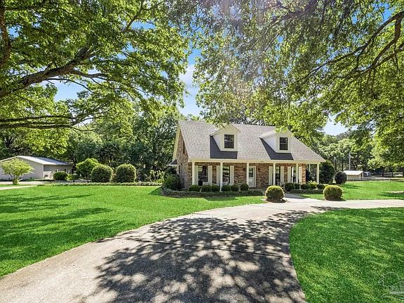 Welcome to this one of a kind property with so much to offer! This is not only a dream charming country living with the peaceful, private and green two acres, partially shaded with gorgeous trees, and an amazing all year round blooming trees, bushes, and flowers that attracts hummingbirds, but it comes with a 3096 SF barn and a carport, large enough for horse trailer, an RV or a boat, horse stables, a 864 SF detached garage with 11x8 roll up doors, built in 2020, that has power, LED lights, 60 amp service, and a utility sink. The one and half story well built brick home has been lovingly maintained and updated. It offers a welcoming front porch, an impressive extra storage rooms and space throughout, a large kitchen with stainless steel appliances some brand new, and not older than 3 years, granite countertops, pantry, breakfast bar, a breakfast nook with entry to your cozy sun room, and a living room with a brick wood fireplace. There is a formal dining room with new LVP flooring. The spacious primary bedroom suite downstairs has plenty of sitting area, a walk in closet, and a stain glass window decoration. Both upstairs bedrooms are not only oversized, but they also have a sitting/desk area with great views, walk in closets, and an extra storage room. There is even an attic storage that connects your huge storage room next to the two car carport. Gorgeous brick and bamboo hardwood floors throughout, and a tile in the guest bath that has been recently beautifully renovated. For an extra comfort there are two HVAC units, a whole house water filter, it’s wired for security system. There is a fire pit under a majestic oak tree, large fenced dog run, a walking trail around the wooded area where you can spot deer, and wild turkeys. You also have a plum and fig tree, two pomegranates, a delicious loquat tree, two pecan trees, and ginger plants to enjoy. This is such a beautiful setting that you will feel right at home here. Come and see for yourselves!