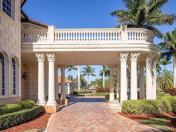 This meticulously crafted transitional-styled residence has been reimagined and is prominently positioned on a secluded waterfront lot exceeding 1 acre. The entrance is graced by an elegant circular drive, featuring an extended portico-covered entry and a majestic 10' European fountain-feature which guides one to 7,850 sq. ft of luxurious interior living space. The first floor unfolds with a spectacular sunken living room with reflective pool views and soaring ceiling opposite a large, elegant dining room. The private office is just outside the opulent primary suite, offering direct pool access, double walk-in closets, and a lavish master bath boasting a double vanity, stand-alone Roman tub, and a separate shower. A first-floor private en-suite guest room.. SEE MORE This meticulously crafted transitional-styled residence has been reimagined and is prominently positioned on a secluded waterfront lot exceeding 1 acre. The entrance is graced by an elegant circular drive, featuring an extended portico-covered entry and a majestic 10' European fountain-feature which guides one to 7,850 sq. ft of luxurious interior living space. The first floor unfolds with a spectacular sunken living room with reflective pool views and soaring ceiling opposite a large, elegant dining room. The private office is just outside the opulent primary suite, offering direct pool access, double walk-in closets, and a lavish master bath boasting a double vanity, stand-alone Roman tub, and a separate shower. A first-floor private en-suite guest room is conveniently located off the oversized open kitchen, which includes a separate breakfast area and a wrap-around bar overlooking the family room with pool access. Marble flooring adorns the main living areas, staircase, and second-floor mezzanines and hallway, while hardwoods embellish the first-floor bedrooms and spacious office.