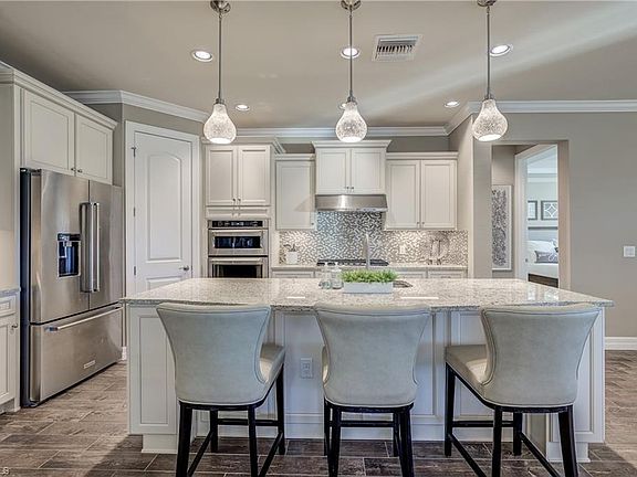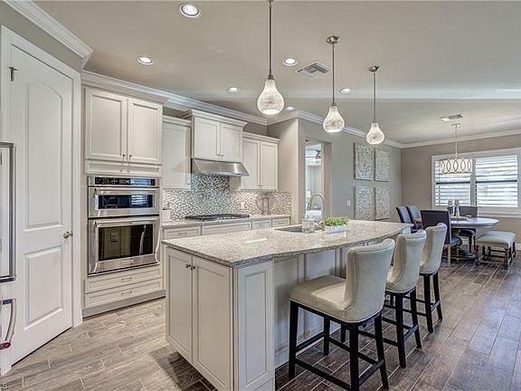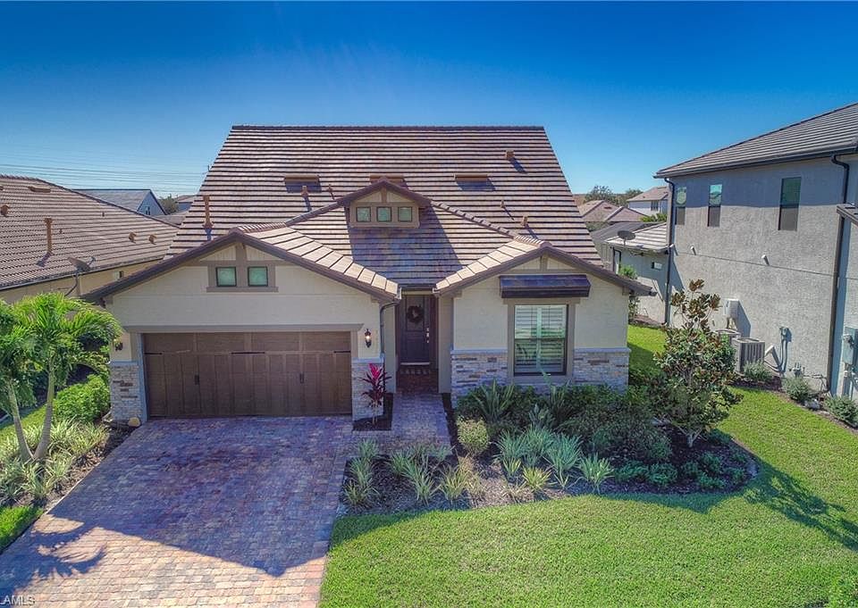 Verona Pointe ESTATES-Tucked in, gated enclave on popular Livingston Road corridor, just south of Talis Park & Mediterra! Don't let footprint of home fool you-this is 100 pounds of TO DIE FOR in a 50 pound bag of VALUE GALORE!! Upgrades meet you at front door, w/porcelain wood plank floors, upgraded lighting, custom wood trim work, & taupe/gray palette-NO detail has been overlooked! Walk through to great room that encompasses living, formal & casual dining, & flows to screened terrace, overlooking fountain & southern lake views! You will not miss a beat in GOURMET Kitchen w/Upgraded Kitchen Aid commercial-grade stainless appliances, including gas range & double oven, extended island w/breakfast bar & custom back splash! Custom closets & Plantation shutters thru out. Summerwood floor plan has 4 Bedrooms+DEN+LOFT. Energy efficiency is not an issue here-w/NATURAL gas & HURRICANE rated windows/doors-you will be the popular destination. Do you love to grill?? Enjoy SUMMER KITCHEN that has never been used!! Plenty of room to add private pool, & extra room on each side of the home, so you don't feel squeezed. In the front, you will love the nature preserve! See brochure for upgrades!