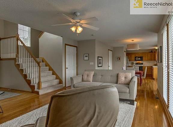 Light and bright open floor plan! Hardwood floors at the entry, living room, dining room and kitchen! Great kitchen with large pantry. Large maintenance free deck opens to a beautiful backyard! Master bath with his and her vanities. The second bedroom has its own nook for an office or playroom. Finished lower level with rec room and space for office. Google Fiber! Walking distance to the park and award winning elementary school! Easy highway access and close to shopping and dining!