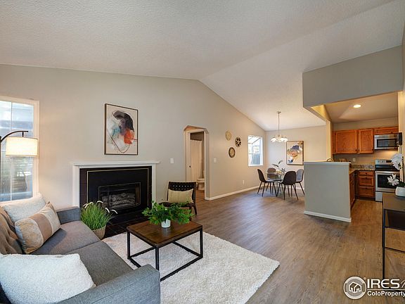 Don't miss this adorable ranch home with easy and convenient main floor living on a quiet street in a great central Longmont location. The open and functional floor plan includes vaulted ceilings, a cozy living room gas fireplace, a separate dining space and best of all - dual primary suites, each with an attached ensuite and tremendous walk-in closets. The main living area, kitchen and both bathrooms feature brand new wide-plank, waterproof vinyl flooring along with new interior and exterior paint. The delightful kitchen also includes granite countertops and newer stainless steel appliances. Not included in the total square footage is an additional 160 sq. foot sunroom/enclosed patio area offering a bonus flex space with outdoor access. Outside is an absolute private retreat with a lounging patio space and a fully fenced in backyard enveloped by beautiful mature trees. Raised garden beds and an outdoor storage shed are conveniently ready for the green thumb. With an attached garage and ample crawl space, there is plenty of room for extra storage and rest easy with a newer roof! Enjoy the short walk to both Garden Acres Park and the local Dog Park. With no stairs and a great floor plan, this lovely, move-in ready ranch home is truly main floor living at its finest.