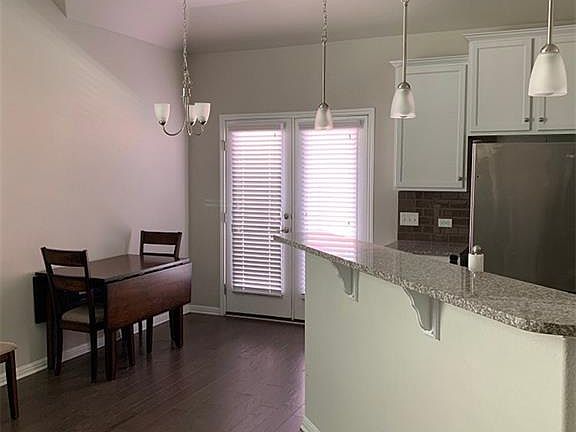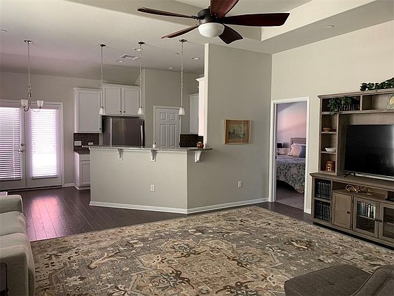Pretty Condo with Bonus Room/office. Lightly lived in.Small fenced back yard. Cabinets and countertops were an upgrade as well as the dark wood flooring throughout the main areas. Tall ceilings. Spacious and open living area with dining area. Kitchen opens to living area, stainless appliances. Very convenient - situated right at the end of an egress street from the neighborhood and close to additional guest parking. Lawn care included with HOA.