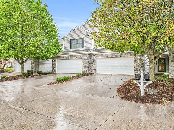 Discover this beautifully updated 3-bedroom, 2.5-bathroom condo. As you enter, you'll be captivated by the grand 2-story ceiling, expansive windows that flood the space with natural light, and a cozy gas log fireplace. Gorgeous hardwood floors enhance the living room and continue throughout the main level. The renovated kitchen features quartz countertops, a modern refrigerator, IH oven/cooktop, range hood, and sink. Adjacent to the kitchen, the dining room provides access to a private fenced backyard with a patio and a line of trees for added seclusion. Completing the main floor are a convenient half bath and a laundry room equipped with a sink and storage cabinets. Unwind in the spacious primary suite, complete with a walk-in closet and a full bath featuring dual sinks. The second floor also includes two sizable bedrooms and a full bathroom. Recent upgrades include a new A/C and furnace (installed in 2022), a new triple pane patio door (installed late 2021) and a new roof will be installed in the coming summer and paid in full by the seller. Enjoy effortless entertaining with community amenities such as a putting green, a built-in stone firepit with seating, and a serene pond. Don't miss this opportunity-schedule your visit today!