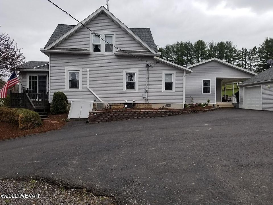 This farmhouse compliments its setting in Old Lycoming Township. You will feel away from it all yet just minutes to Williamsport. Prominently situated on 12 acres, it offers a seasonal stream, woods, above ground pool with deck, BBQ area, and a covered porch for watching the sunset and wildlife. Two 2 car detached garages for all the toys and one includes a MAN CAVE above for a nice escape or your work from home office. All leading to your crisp clean black top driveway. Come inside this delightful 2 story home with a finished basement. The main floor boasts a cozy sunroom with lots of windows, living room with propane fireplace and a formal dining room for holiday meals. The cook will enjoy the galley kitchen with everything at their fingertips. Breakfast nook, laundry and a half bath