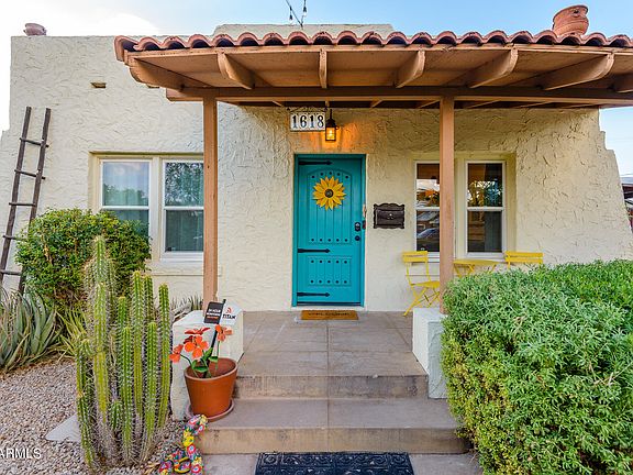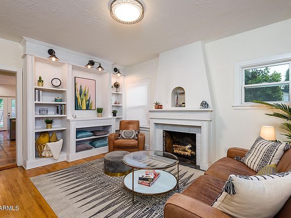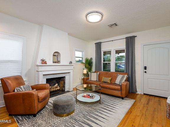 A must-see beautifully renovated historic home with designer finishes in the heart of Phoenix! This enchanting 1940s bungalow has a bright and open floor plan with 2 Bedrooms and 1.5 Bathrooms. The living room features a fireplace, built-in custom bookcases and hardwood flooring. The updated kitchen includes soft-close custom Thomasville cabinetry, quartz countertops, a subway tile backsplash, a new faucet, stainless steel appliances, and recessed lighting. A 200+ sq ft addition to the kitchen area features a dining room with built-in bench seating and storage, a guest bath, and a laundry room with a sliding barn door. A set of French doors leads to a well-appointed backyard boasting a patio with a pergola and cafe lighting, new artificial grass, a propane fire pit, and a large storage shed. Additional updates include upgraded vinyl windows, plumbing & electrical, an HVAC system, a tankless water heater, Nest thermostat, Ring doorbell and cameras, and upgraded foam roofing. The newly done landscaping features mature ficus hedges and a new drip system. This property is available fully furnished on a separate bill of sale, it is currently a seasonal home that is being rented on Airbnb.
