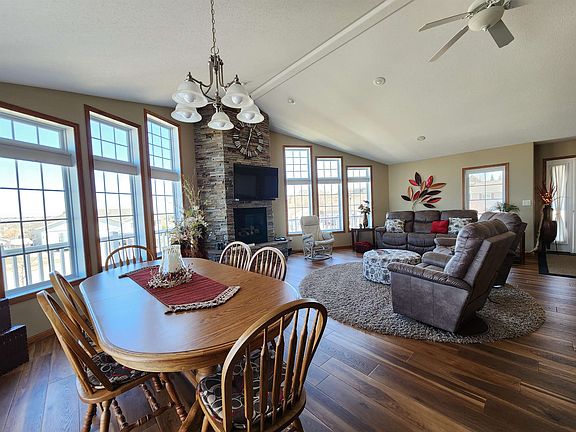 This beautiful raised ranch-style home is a must-see, offering comfortable living with plenty of space and modern updates. Featuring four spacious bedrooms (2 up and 2 daylight bedrooms down) and three bathrooms. This home is perfect for all life styles including those who love to entertain guests. The heated, attached three-car garage provides ample parking and storage, while the wrap-around deck offers a peaceful outdoor space to relax and enjoy the view. Inside, the living room, dining room, and kitchen have new floors that give the home a fresh, modern feel. The living room also features a cozy gas fireplace with a stunning floor-to-ceiling rock wall that creates a cozy and inviting atmosphere. Large windows by the fireplace allow natural light to flood the room, providing a warm and welcoming ambiance. This space is open and airy with sliding glass doors leading out the back deck, with stairs leading down to the yard. There is a shed tucked under the deck for additional storage. The home is situated on a corner lot with beautiful landscaping and a sprinkler system. The primary bedroom has a new extended closet with numerous built ins (including a pull-out ironing board, and jewelry drawer with additional trays inside) which provides additional storage space, and eliminates the need for additional dressers in the bedroom, the ensuite bathroom has been enlarged and updated featuring a walk-in shower. There is a main floor laundry room and additional laundry hookups in the basement making laundry a breeze. This home also offers plenty of storage space throughout, ensuring that everything has a place. The basement features a spacious family room, perfect for movie nights or gatherings with friends, as well as a versatile room that could be used as a craft room or workshop. Located on the south side of town, this home is conveniently close to a variety of shopping and dining options. This is a home you won't want to miss. Call your favorite Realtor today to check out this beauty!!