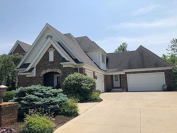 This stunning 5 bedroom 5 car garage estate home in Canyon Run with an outdoor paradise awaits you! Private lot backing up to woods yet conveniently located (6.8 miles to Parkview). Custom designed and built with quality in mind. Master bedroom suite is on main level and has walk out access to upper deck overlooking in-ground pool and nature setting. Large Andersen windows throughout lets oodles of natural light pour in. Chef's kitchen has stainless appliances, double ovens, gas cooktop, huge island, custom cabinetry, solid surface countertops, under cabinet and above cabinet lighting, walk-in pantry, beverage bar and breakfast nook. Also on main level is living room, hearth room, formal dining, den and laundry. Second level has three bedrooms (all with en suite baths) and bonus room that serves as walk in attic storage that could be finished. Basement has family room, guest bedroom, full bath, theater room and exercise room. Basement also has room for future wine room, plumbed for future bar/kitchen and two large storage rooms. Theater room's equipment stays with home. Lot is a rare walk out lot that does not require a sump pump! Other features include security system with 8 cameras, irrigation system, zoned heating and cooling (two high efficiency furnaces and two A/C), water softener, whole house humidifier and custom window treatments. Outdoor area has in-ground pool (new liner and automatic cover new in 2018), in-ground hot tub with cover, fire pit, maintenance free decking professional landscaping. Water heater new in 2019, well tank 2019, refrigerator in 2017.