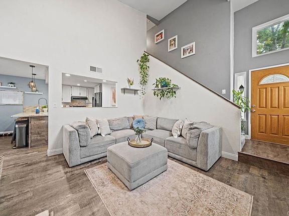 his beautifully well-maintained home offers a blend of modern amenities and comfort in a serene cul-de-sac setting. This inviting residence boasts 3 spacious bedrooms and 2.5 bathrooms, ideal for a bust lifestyle. Step inside to discover stylish 9" plank flooring that flows throughout the open-concept layout, adding warmth and sophistication to every room. The upgraded open kitchen is a standout with custom quartz countertops, offering both beauty and functionality, perfect for cooking and entertaining. LED can lighting brightens the space, enhancing its contemporary feel. Enjoy the energy efficiency of dual pane windows and a whole-house water filtration system, ensuring comfort and peace of mind. The spacious 2-car garage provides ample storage space, while the low-maintenance front and back yards feature synthetic turf, offering a lush look year-round without the upkeep. Located in a desirable cul-de-sac, this home is not only a peaceful retreat but also conveniently close to shopping, dining, and entertainment options. Whether you're grabbing a quick bite, enjoying a night out, or running errands, everything you need is just moments away. Don’t miss out on the opportunity to own this stunning, well-maintained property!