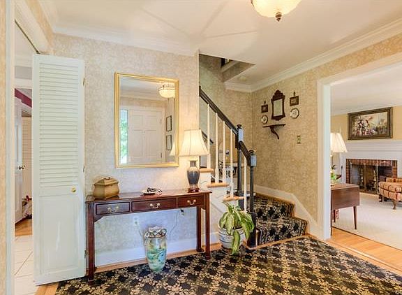 Custom built one owner totally renovated with brand new chef's kitchen. Finished basement could possibly be separate quarters with full bath. Landscaped yard with waterfall Koi point lush plantings. All hardwood floors, crown mouldings. Whole house automatic gas generator. All fireplaces and flues "as is".