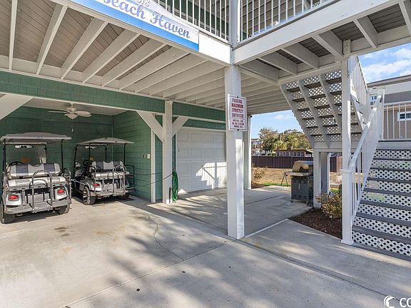 Welcome to "My Beach Haven"! This spectacular furnished 6 bed 7 bath raised beach home features ocean views from the third-floor balcony, an outdoor pool, hot tub, an elevator to all three levels, two golf carts for quick access to the beach and has been updated with new landscaping, new flooring and new commercial grade living room furniture on the second and third levels, new pool furniture and the exterior was just painted in 2021. Beautifully furnished and decorated, this home offers a fantastic floor plan that allows for some many options for renting or personal use! The first floor, which would be ideal as a lockout, has tile floors, a bedroom with full bath with tub/shower and a kitchenette, a workshop, a storage area for all your beach equipment and covered parking with space for the golf carts. The second floor boasts a spacious living room and dining area, fully equipped kitchen with stainless appliances, abundant cabinet and counter space, a pantry and breakfast bar, two master suites with private full baths, a guest bedroom, an additional full bath and a laundry room. The third floor also has a fully equipped kitchen, expansive family room with pool table, a master suite with full bath, a guest bedroom, an additional full bath and a washer and dryer. Additional features include ceiling fans and crown molding throughout, vanities in all of the interior bathrooms, wood floors in the bedrooms, an intercom system, separate entrances for each floor and ample parking spaces in the driveway and under the home. Outside enjoyment is guaranteed with the private pool and hot tub, an extended covered patio area with picnic tables for dining and games and a bar with seating, gas and charcoal grills, and a fully enclosed outdoor shower and bathroom. Multiple balconies and porches provide room for family and guests to gather, kick back and relax after a long day at the beach. Fantastic central location just steps from the beach and close to shopping, dining, golf, fishing, Barefoot Landing, attractions and entertainment. Whether you are in search of a great investment opportunity, or your dream vacation getaway, this fabulous home is truly a must see! Don't miss this opportunity! Schedule your private showing today. Paradise awaits!