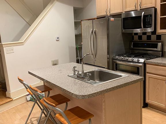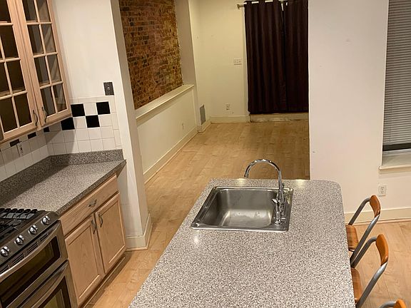 3 BR/2 BA renovated townhouse, exposed brick, hardwood floors, large bedrooms, walk-in closets, roof deck, large enclosed patio/backyard, parking, security system, great location on fully renovated block.