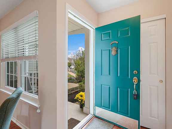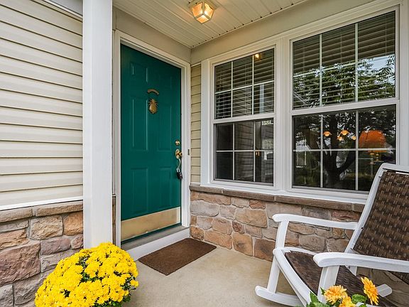 Welcome to this beautifully upgraded and meticulously maintained townhome, perfectly situated on a premium cul-de-sac lot in the highly sought-after Windrush community! Step inside and be greeted by an elegant open floor plan featuring warm-toned laminate flooring that flows seamlessly throughout the main level. Architectural columns define the spacious living and dining rooms. Upgraded eat-in kitchen features granite countertops, stainless steel appliances, ceramic tile backsplash, and a dining area that overlooks a serene, landscaped patio with flowering plants, shrubs and lighting. Dramatic two-story family room with soaring palladium windows that flood the space with natural light. Step through the rear door to a beautifully hardscaped and fenced patio. Open turned staircase leads to a spacious second floor. The primary suite features elegant French doors, a tray ceiling, ceiling fan and a huge walk-in closet. The luxury primary bath includes double vanities, a soaking tub and a walk in shower. Generously sized second bedroom with double closet and ceiling fan. A full hall bath with tub/shower combination. Convenient second floor laundry with washer and dryer. Additional features include a first floor powder room and a large pantry/closet. Interior access to garage with electric opener. Full basement ready for finishing! Recent upgrades include Hot Water Heater (2025), first floor double-hung windows (2025), HVAC (2015), Laminate flooring and carpeting; updated lighting and fixtures, new refrigerator in garage. This home has been lovingly maintained and shows beautifully!