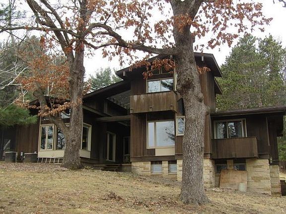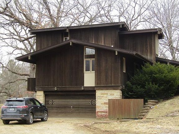 Mississippi River view home with Old growth Hard Redwood siding unique architectural design. This home is sitting on 6 acres M/L lot in the city limits on the bluff overlooking the River Valley view. 3 bedrooms each with it own private full bathroom, all with hardwood flooring and all with river valley views. Main level includes open kitchen design, center island with stovetop, all updated appliances, solid countertops, loads of storage in hardwood cabinets. Just off the kitchen is a family room with real wood burning fireplace, great gathering place, and patio doors leading to the 3 season room facing the Mississippi River. Large formal dinning room adjacent to the main living room with large windows for natural lighting. Open hardwood staircase leading to the upper level master bedroom with sliding glass doors leading to small private patio’s. Lower basement level has plenty of storage and 2 updated furnaces and a 2 car under garage. All this is sitting on an enormous lot with mature pine tree grove and loads of area for your privacy!