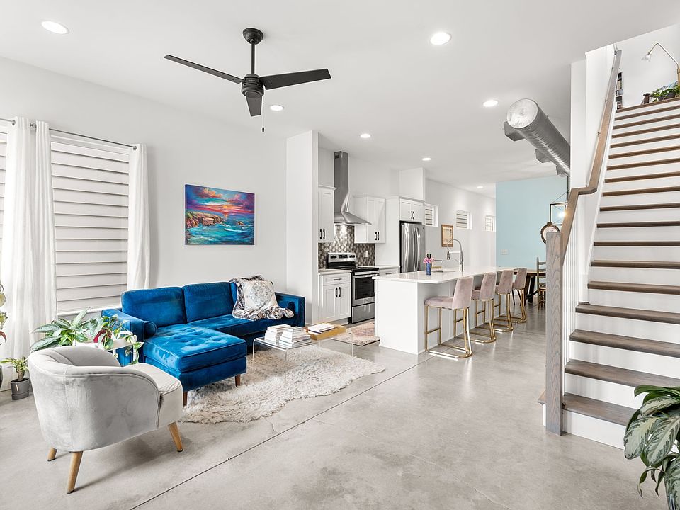 Exquisite modern build in the heart of East Nashville. This open concept floorplan is complete with two primary suites and two living room spaces. The third bedroom features an ensuite bathroom + an incredible vaulted ceiling with transom windows. Each bathroom includes quartz double vanities and a varying tile aesthetic unique to each space. The upstairs primary features a large walk-in shower for total relaxation. Beautiful concrete floors downstairs and hardwoods upstairs. Updates include a fully fenced in backyard, composite deck + landscaping, new roof and refinished concrete floors. One block away from Riverside Revival, Babo and South Inglewood Park -- close proximity to Cafe Roze, Vinyl Tap, Riverside Village and many other East Nashville staples.