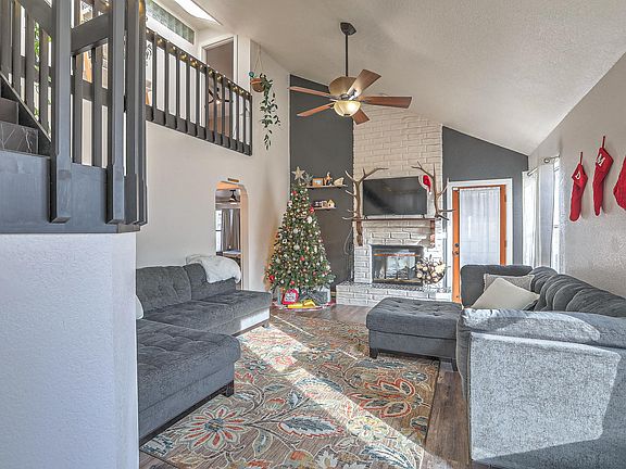 Fabulous four bedroom home with lots of natural light. New Stucco,New Furnace, New AC, some new roofing, New vinyl and tile flooring, Some new updates to bathroom and kitchen, all appliances stay. Primary bedroom is downstairs with a HUGE Bathroom. Secondary bedrooms are ALL generous in size. Family room has lovely wood burning brick fireplace. Low maintenance backyard with garden beds.