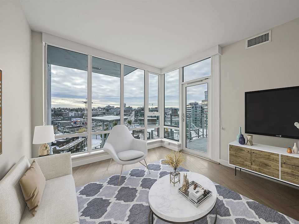 If being in the centre of Vancouver's trendy Southeast Fraser Creek neighbourhood in a spacious condo just steps to the seawall, Science World and Olympic Village excites you, look no further! This well-kept 640 sqft home ft. bright floor to ceiling windows, S/S appliances, stone countertops, central A/C, light Oak laminate flooring & access to luxurious resort-like amenities. Open concept layout great for hosting family&friends while enjoying a beautiful view. Walk-in closet in the bedroom is equipped w/ built-in storage overhead + drawers to maximize the already large closet! Access to professionally equipped gym, party room, playground, garden plots & large outdoor deck w/BBQs perfect for summer! 1 parking w/ EV charging +1 locker includ.