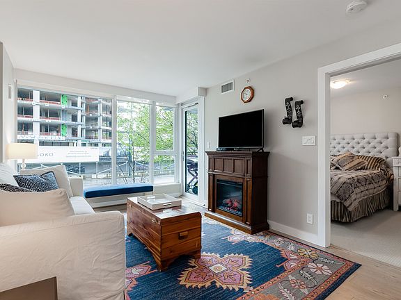 SUPER FUNCTIONAL 1 BEDROOM AND DEN HOME IN CENTRAL BY ONNI! This beautiful home features a gourmet kitchen with sleek cabinetry, quartz counters, full sized stainless steel appliances and opens into the open concept dining and living rooms on durable laminate flooring. The bedroom is spacious and spa bathroom features a soaker tub, and designer tiles and fixtures throughout. Appreciate A/C and roller blinds throughout. All of this in the most convenient Olympic Village location - steps to the seawall, skytrain, grocery stores, cafes, banks and parks! Stunning building amenities including: concierge, huge fitness centre, rooftop deck and extensive party room, theatre and conference room. Includes 1 parking & 1 storage.
