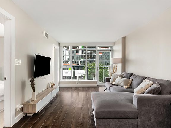 Welcome to Central by ONNI! This bright and functional 1 bed, 1 bath features a gourmet kitchen with stainless steel appliances, gas range stove, quartz countertops, A/C, Den, and Solarium/Flex. Centrally and conveniently located just steps from the Seawall, Skytrain Station, restaurants, parks, and Olympic Village! Comes with great amenities- gym, rooftop playground/garden, theatre, sauna and concierge. Comes with 1 parking stall and 1 storage locker. Perfect for an investor or first time home buyer!