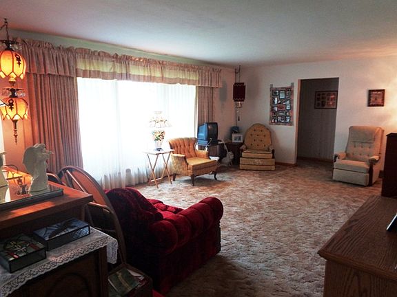 Car Lover or Mechanics Dream....6 to 8 Car Detached Heated Garage Previously Used For Office/18 Wheeler Truck Work Shop! This 2 bedroom brick home with 1 plus acres offers large living room w/Fireplace. Family room w/Stone Fireplace/Custom Bookcase/Enclosed Office Space. Eat In Spacious Kitchen Includes Appliances/Pantry. First Floor Laundry Has Beauty Shop Booth Area. Master Bedroom w/double closets. Second bedroom w/closet. Two Full Bathrooms. Plenty of storage space in this home plus two car attached garage. Updates include: roof 10-12 yrs old, some windows, furnace 2012, new well 2001.