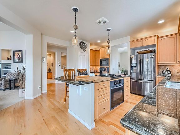 Welcome to this immaculate home located in the heart of Castle Rock. The beautiful Renaissance built ranch home with a walk-out basement is located in a quiet cul-de-sac, has 4 beds, 4 baths and fantastic mountain views backing to open space. Inviting large kitchen with slab granite counters, an island with 5-burner gas cooktop, 42” cabinets, hardwood flooring and an eat-in breakfast space. The primary bedroom is located on the main level and is accented with tray ceilings. It has an attached 5-piece bathroom and large master closet. The formal dining room is located right off the kitchen and down the hall is the powder room. An additional bedroom with an ensuite full bathroom, is currently used as an office. The laundry room allows access directly to the master closet and completes the main level. The large deck that overlooks open space, is partially covered and is the perfect spot to enjoy your morning coffee and watch for wildlife. The professionally finished walk-out basement offers a wonderful light bright family room, 2 more bedrooms, 3/4 bath and large storage area. The mature landscaping and designated open space make this a very special home. The furnace has a humidifier and the whole house fan help with the heating and cooling. The 3-car garage has plenty of space. Easy access to the highway, restaurants, amazing shopping, Castle Rock Rec Center and the Outlets at Castle Rock. Countless trails for walking, biking and enjoying all that Colorado has to offer are located within close proximity to the home. Don't hesitate schedule your private showing before it's gone!