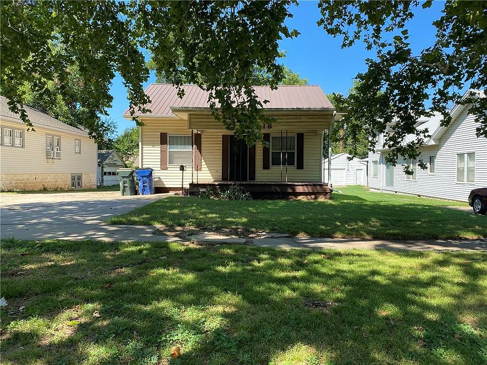 Don't miss out! This 3bd 1ba home has large, mature shade trees in the front and back. The kitchen and laundry room have more storage than you could ever need. Beautiful NEW carpet and interior paint. The dining room is spacious enough to hold a vary large table for those family gatherings. There is a covered patio with access to a full basement. Metal roof makes for low maintenance. This home has been a rental for the last 15 years and never had a problem staying occupied. Schedule your showing today!